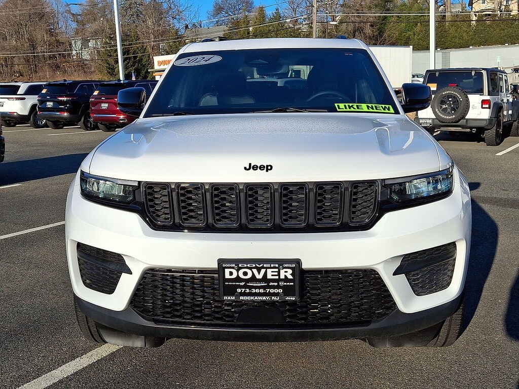 Certified. Bright White Clearcoat 2024 Jeep Grand Cherokee Altitude X 4WD 8-Speed Automatic 3.6L V6 24V VVT 4WD. Quick Order Package 23M Altitude X (115V Auxiliary Power Outlet, Altitude X, Black Headliner, Capri Leatherette/Suede Seats, Delete Laredo Badge, Gloss Black Exterior Accents, Heated Front Seats, Heated Steering Wheel, Power Liftgate, Power Sunroof, Rain Sensitive Windshield Wipers, Remote Start System, Selectable Tire Fill Alert, Wheels: 18" x 8" Fully Painted Aluminum 1, and Wireless Charging Pad), FCA US LLC Certified Pre-Owned Certified, 4WD, 3.45 Rear Axle Ratio, 4-Wheel Disc Brakes, 6 Speakers, ABS brakes, Air Conditioning, Alloy wheels, Anti-whiplash front head restraints, Automatic temperature control, Brake assist, Bumpers: body-color, Cloth Seats, Compass, Delay-off headlights, Driver door bin, Driver vanity mirror, Dual front impact airbags, Dual front side impact airbags, Electronic Stability Control, Emergency communication system, Four wheel independent suspension, Front anti-roll bar, Front Bucket Seats, Front Center Armrest w/Storage, Front dual zone A/C, Front License Plate Bracket, Front reading lights, Fully automatic headlights, Heated door mirrors, Illuminated entry, Knee airbag, Low tire pressure warning, Normal Duty Suspension, Occupant sensing airbag, Outside temperature display, Overhead airbag, Overhead console, Panic alarm, ParkView Rear Back-Up Camera, Passenger door bin, Passenger vanity mirror, Power door mirrors, Power driver seat, Power steering, Power windows, Radio data system, Radio: Uconnect 5 w/8.4" Display, Rear anti-roll bar, Rear reading lights, Rear window defroster, Rear window wiper, Remote keyless entry, Security system, Speed control, Speed-Sensitive Wipers, Split folding rear seat, Spoiler, Steering wheel mounted audio controls, Tachometer, Telescoping steering wheel, Tilt steering wheel, Traction control, Trip computer, Variably intermittent wipers, Voltmeter, Wheels: 17" x 6.5" Fully Painted Aluminum, and Wheels: 20" x 8.5" Gloss Black Painted Aluminum. The team of sales, finance, and service professionals at our dealership go above and beyond to deliver exceptional customer service, every time. We're proud of the service we provide our customers, and we have the people to back it up. We've repeatedly earned the Customer First Award for Excellence, which is bestowed to select dealerships that have achieved the highest level of customer experience recognition in the program's five core areas: Customer Treatment, Employee Engagement, Facilities, Processes, and Training Certification. Be sure to check out our Google reviews for further proof of our dedication to serving customers like you. Odometer is 13811 miles below market average! 19/26 City/Highway MPG FCA US LLC Certified Pre-Owned Details: * Powertrain Limited Warranty: 84 Month/100,000 Mile (whichever comes first) from original in-service date * Transferable Warranty * Roadside Assistance * Limited Warranty: 3 Month/3,000 Mile (whichever comes first) after new car warranty expires or from certified purchase date * 125 Point Inspection * Warranty Deductible: $100 * Vehicle History * Vehicles Up to 75,000 Miles and/or 5 Model Years. 24-Hour Towing & Roadside Assistance, Car Rental Allowance, CARFAX̨̉ Vehicle History ReportTM and an Introductory 3-month Subscription to SiriusXM̨̉ Satellite Radio & Certified Warranty UpgradesCertified Pre-OwnedCertified Pre-Owned