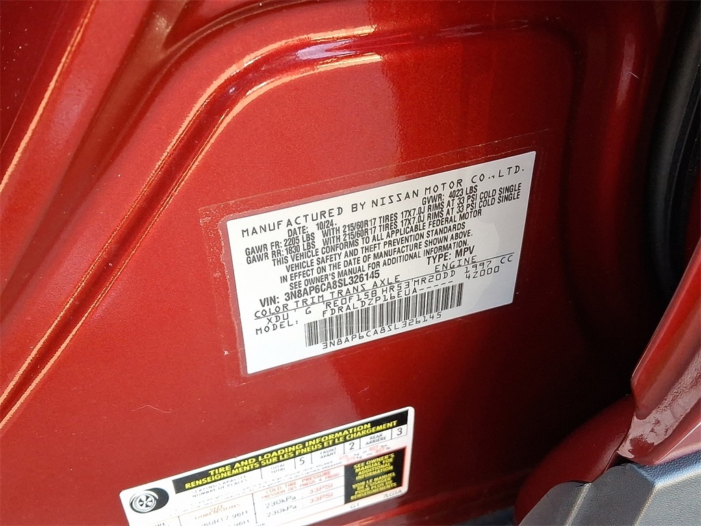 Make a bold statement with this stunning 2025 Nissan Kicks SV, finished in the premium Scarlet Ember Tintcoat with a Super Black roof. This eye-catching two-tone color combination enhances the Kicks modern, athletic styling while delivering exceptional fuel efficiency and everyday practicality. With one-owner history, immaculate condition, and Nissan Certified Pre-Owned status, this vehicle offers both peace of mind and outstanding value.