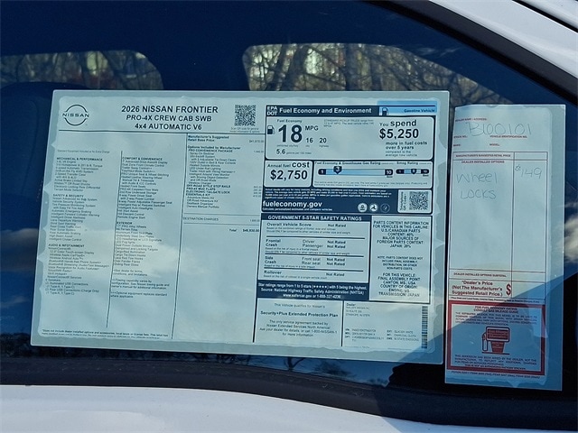 Glacier White 2026 Nissan Frontier PRO-4X 4WD 9-Speed Automatic with Overdrive 3.8L DI DOHC 24V V6