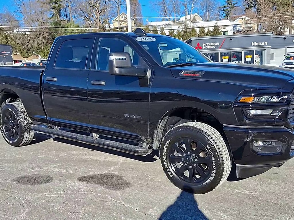 Recent Arrival! Diamond Black Crystal Pearlcoat 2025 Ram 2500 Big Horn 4WD 8-Speed Automatic 6.4L V8 Big Horn Level 1 Plus Equipment Group (12" Touchscreen Display, 2 Way Rear Headrest Seat, 2nd Row In Floor Storage Bins, 4 Way Front Headrests, 40/20/40 Split Bench Seat, 4G LTE Wi-Fi Hot Spot, 9 Alpine Speakers w/Subwoofer, Air Conditioning ATC w/Dual Zone Control, Alexa Built-In, Anti-Spin Differential Rear Axle, Apple CarPlay, Auto Power-Folding Mirrors, Auto-Dimming Rear-View Mirror, Black Exterior Mirrors, Connected Travel & Traffic Services, Connectivity - US/Canada, Dual Glove Boxes, Emergency Vehicle Alert System (EVAS), Exterior Mirrors Courtesy Lamps, Exterior Mirrors w/Heating Element, Exterior Mirrors w/Supplemental Signals, Foam Bottle Insert (Door Trim Panel), Folding Flat Load Floor Storage, Footwell Courtesy Lamp, Forward & Reverse Utility Lights, Front Armrest w/Cupholders, Front Center Seat Cushion Storage, Front Seat Back Map Pockets, Global Telematics Box Module (TBM), Glove Box Lamp, Google Android Auto, GPS Antenna Input, GPS Navigation, HD Radio, Integrated Voice Command w/Bluetooth, LED Bed Lighting, Locking Lower Glove Box, Luxury Steering Wheel, Manual Adjust 4-Way Front Passenger Seat, Mirror Running Lights, MOPAR Deployable Bed Step, MOPAR Spray In Bedliner, Off-Road Info Pages, Power 2-Way Driver Lumbar Adjust, Power Adjust 8-Way Driver Seat, Power Adjust Mirrors, Power Adjustable Convex Aux Mirrors, Power Heated Folding Telescopic Mirrors, Power Telescoping Mirrors, Premium Cloth 40/20/40 Bench Seat, Radio: Uconnect 5 Nav w/12.0" Display, Rear 60/40 Folding Seat, Rear Dome w/On/Off Switch Lamp, Remote Start System, Remote USB Port - Charge Only, Selectable Tire Fill Alert, SiriusXM Radio Service, SiriusXM w/360L, Steering Wheel Mounted Audio Controls, Storage Tray, and Trailer Tow Pages), Night Edition (Black Exterior Truck Badging, Black Interior Accents, Black Wheel Center Hub, Body Color Grille Surround, Gloss Black Nostrils/Mic Black Grille, Painted Front Bumper, Painted Rear Bumper, and Wheels: 20" x 8.0" Black Painted Aluminum), Quick Order Package 2UZ Big Horn, 3.73 Axle Ratio, 4-Wheel Disc Brakes, 6 Speakers, ABS brakes, Air Conditioning, Alloy wheels, AM/FM radio: SiriusXM, Apple CarPlay/Android Auto, Brake assist, Bumpers: chrome, Cloth 40/20/40 Bench Seat, Compass, Delay-off headlights, Driver door bin, Dual front impact airbags, Dual front side impact airbags, Electronic Stability Control, Front anti-roll bar, Front Center Armrest w/Storage, Front fog lights, Front License Plate Bracket, Front reading lights, Fully automatic headlights, Heated door mirrors, Illuminated entry, Low tire pressure warning, Manual Adjust 4-Way Driver Seat, Manufacturer's Statement of Origin, Occupant sensing airbag, Outside temperature display, Overhead airbag, Overhead console, Painted Flat Wheel-to-Wheel Side Steps, Panic alarm, ParkView Rear Back-Up Camera, Passenger door bin, Passenger vanity mirror, Power door mirrors, Power steering, Power windows, Radio data system, Radio: Uconnect 5 w/8.4" Display, Rear anti-roll bar, Rear Folding Seat, Rear seat center armrest, Rear step bumper, Rear window defroster, Remote keyless entry, Security system, Speed control, Tachometer, Tilt steering wheel, Traction control, Trip computer, Turn signal indicator mirrors, Variably intermittent wipers, Vinyl 2nd Row Seat, Voltmeter, and Wheels: 18" x 8.0" Polished Aluminum. The team of sales, finance, and service professionals at our dealership go above and beyond to deliver exceptional customer service, every time. We're proud of the service we provide our customers, and we have the people to back it up. We've repeatedly earned the Customer First Award for Excellence, which is bestowed to select dealerships that have achieved the highest level of customer experience recognition in the program's five core areas: Customer Treatment, Employee Engagement, Facilities, Processes, and Training Certification. Be sure to check